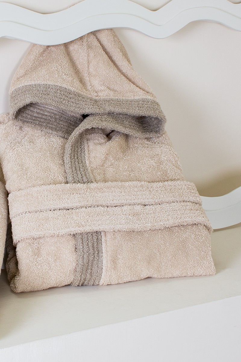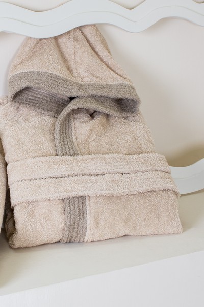• Accappatoio con tasche laterali, cappuccio e cintura con passanti