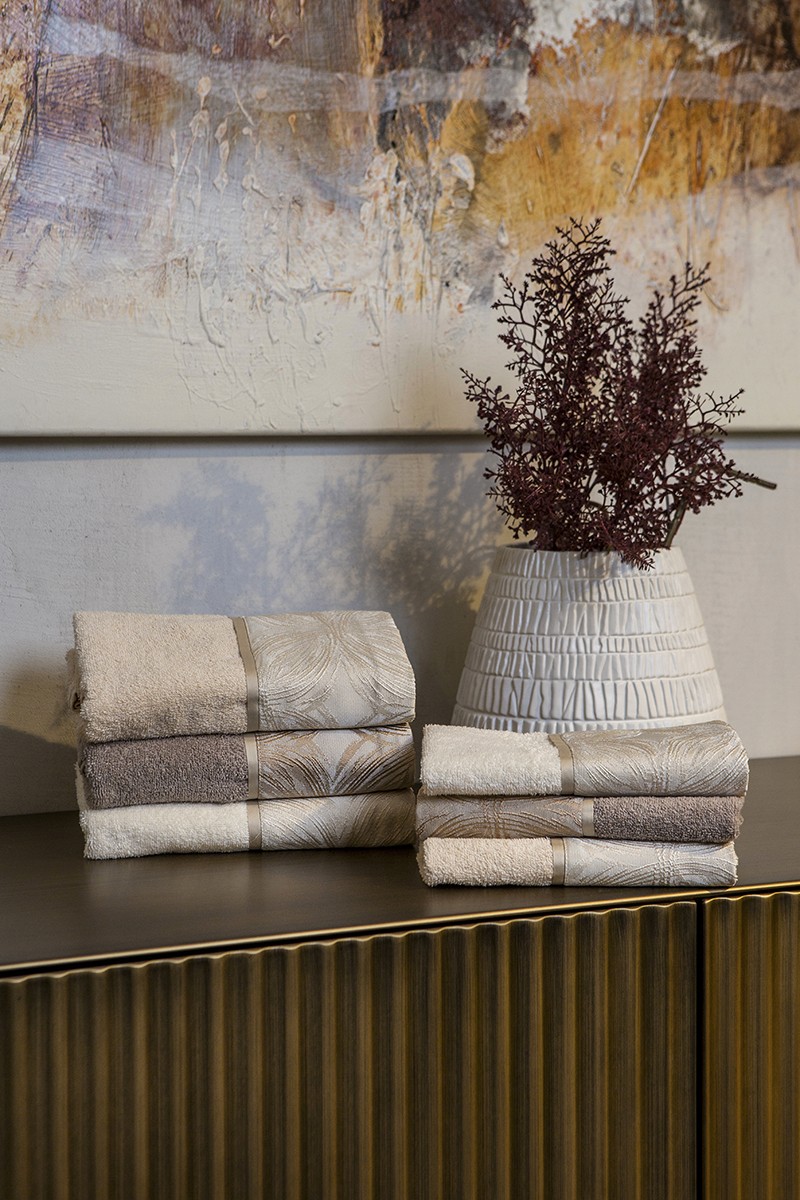 Set asciugamani 3 viso + 3 ospite in 100% spugna di cotone con bordi in tessuto jacquard.