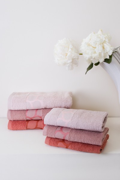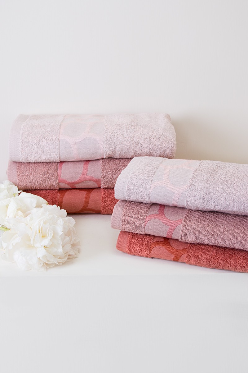 Set asciugamani 3 viso + 3 ospite in 100% spugna di cotone con bordi jacquard.