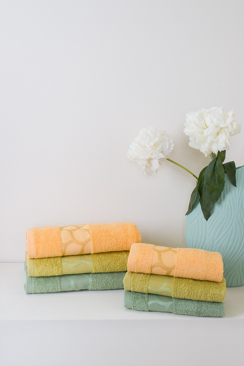 Set asciugamani 3 viso + 3 ospite in 100% spugna di cotone con bordi jacquard.