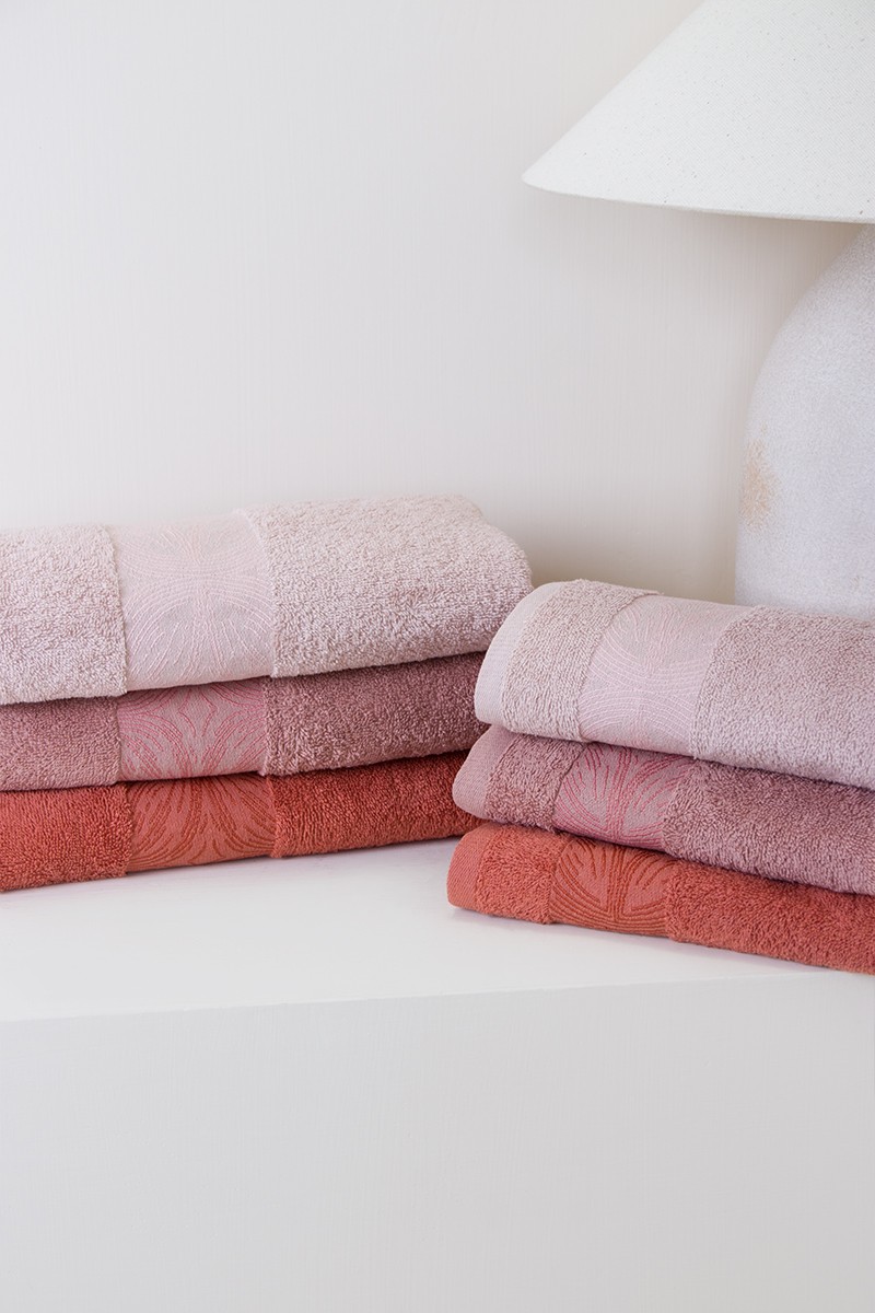 Set asciugamani 3 viso + 3 ospite in 100% spugna di cotone con bordi jacquard.