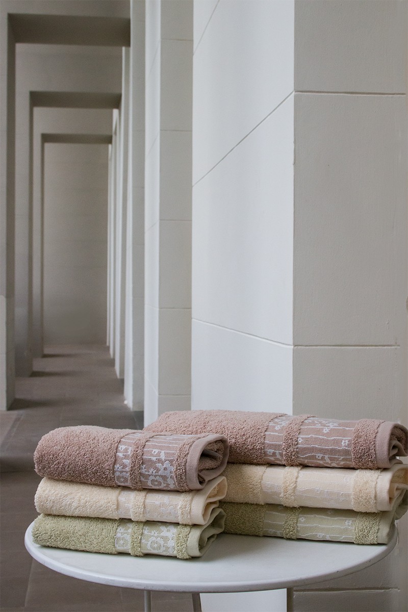 Set asciugamani 3 viso + 3 ospite in 100% spugna di cotone con bordi jacquard.