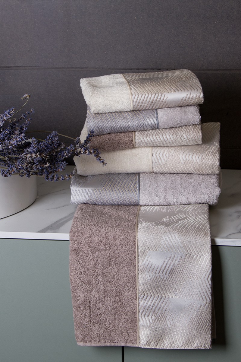 Set asciugamani 3 viso + 3 ospite in 100% spugna di cotone con bordi in tessuto jacquard.