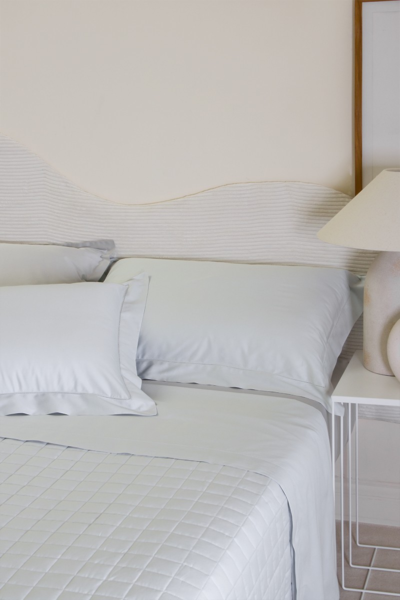 Simona esalta la purezza della forma attraverso un raffinato orlo a giorno che incornicia i profili con discrezione sartoriale