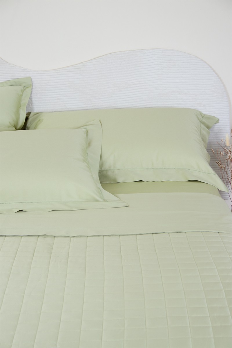 Completo letto 100% raso satin 300 TC tinta unita con orlo a giorno e federe con 4 volants da cm.3.