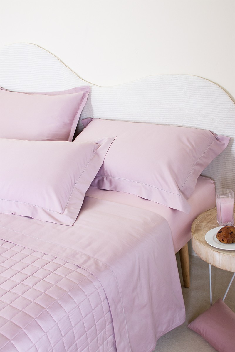Completo letto 100% raso satin 300 TC tinta unita con orlo a giorno e federe con 4 volants da cm.3.
