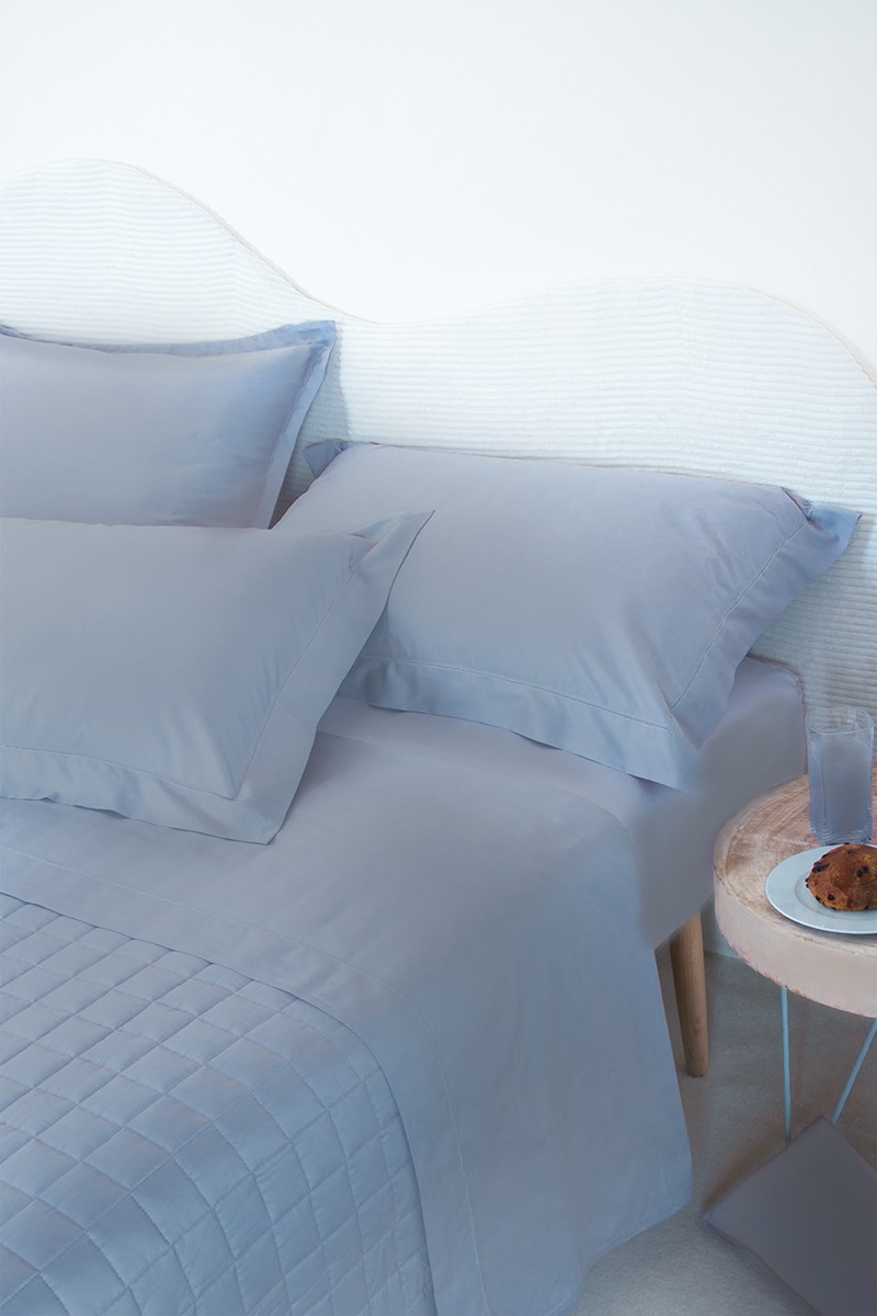 Completo letto 100% raso satin 300 TC tinta unita con orlo a giorno e federe con 4 volants da cm.3.