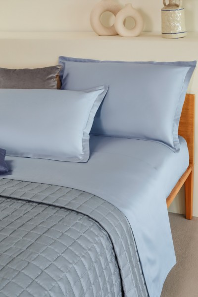 Completo letto 100% puro cotone tinta unita 144 TC sotto con angoli e federe con 3 volants da cm 5