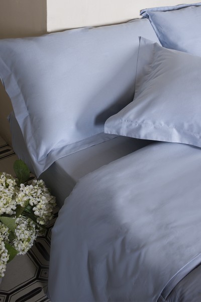 Completo letto 100% puro cotone tinta unita 144 TC sotto con angoli e federe con 3 volants da cm 5