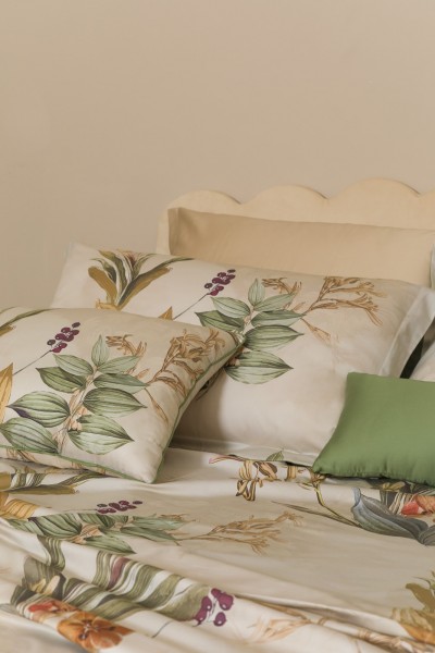 Completo letto Rebecca : il piacere di dormire inizia dalle lenzuola in raso satin 100% 300 TC stampa digitale con disegno floreale.