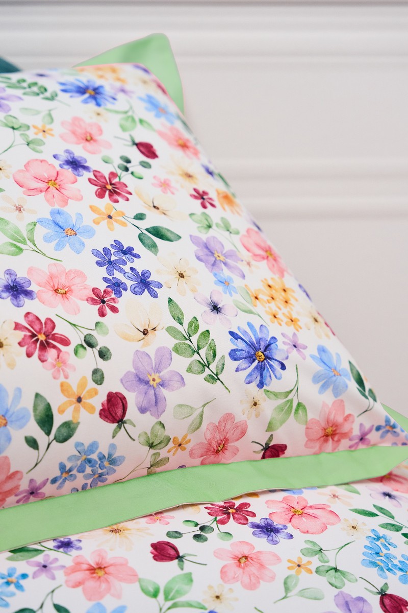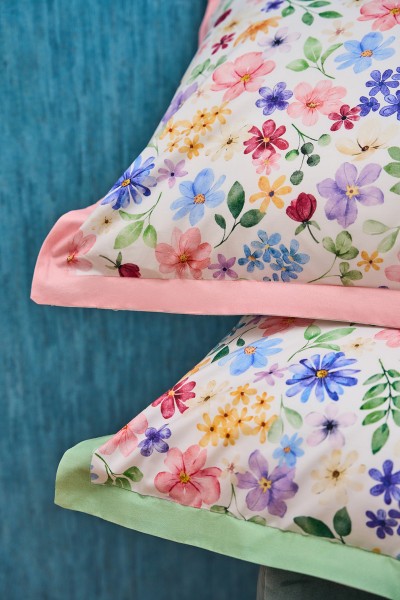 Completo letto Viki : il piacere di dormire inizia dalle lenzuola in Percalle 100% cotone 200Tc disegno floreale all over stampa digitale.