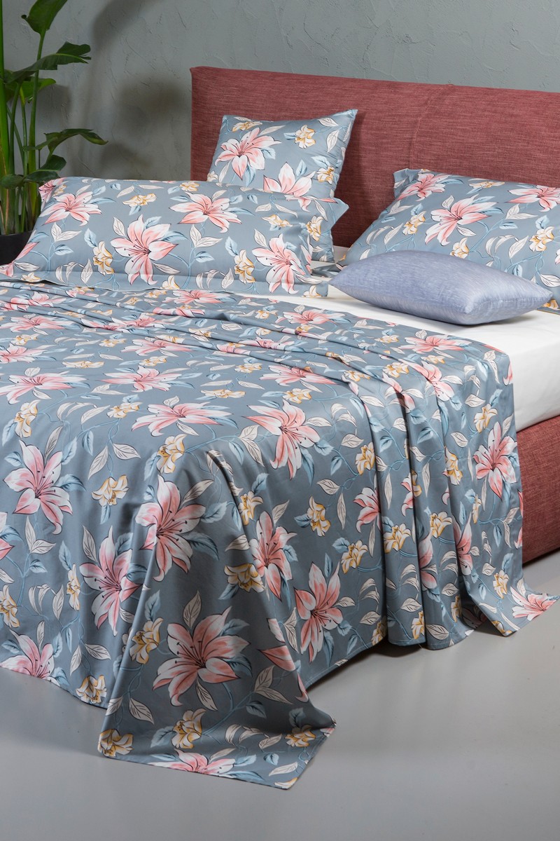 Completo letto Stellar: il piacere di dormire inizia dalle lenzuola in raso satin 100% 300 TC stampa digitale con disegno floreale frutto di creatività e cura artigianale.