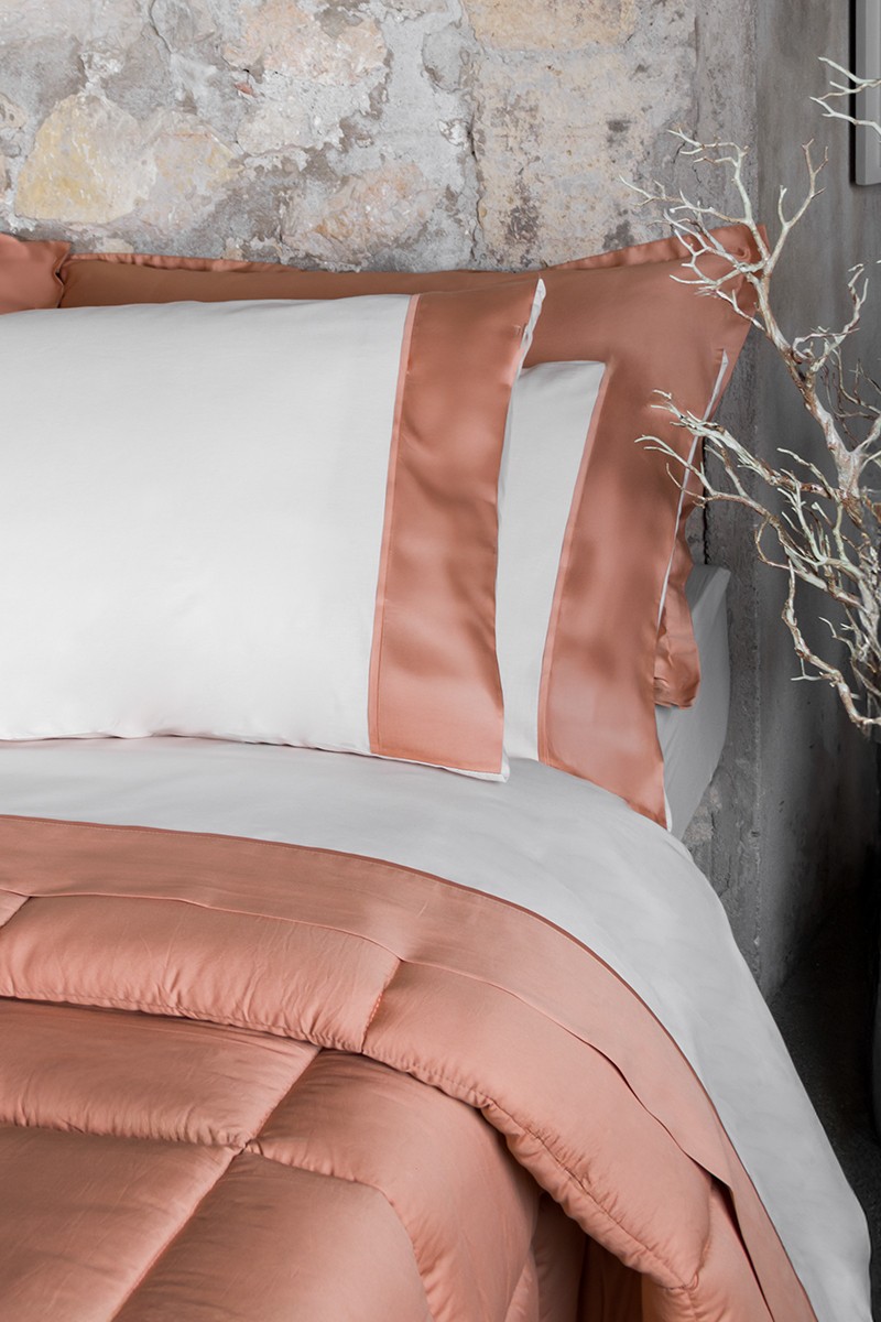 Completo letto in tessuto 100% Puro Cotone 144 TC con bordo lenzuolo superiore e bordo federe in raso cotone