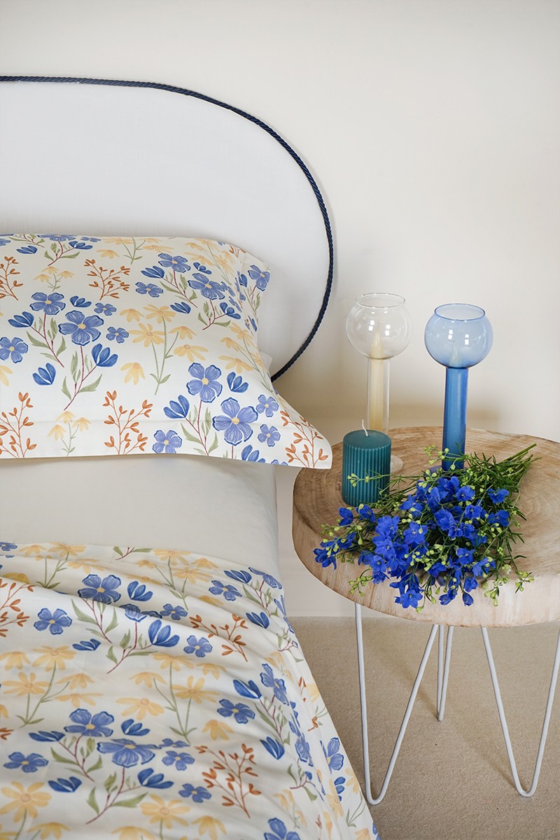 I motivi floreali dell'articolo Lory,creano un equilibrio cromatico che infonde gioia e tranquillità