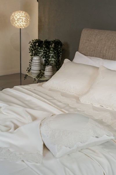 - Il Coordinato Letto Como è composto da 1 lenzuolo superiore (270cm x 290cm) in raso cotone rifinito con pizzo rebrode', 1 lenzuolo inferiore (180cm X 200cm) in raso cotone, 2 federe (50 cm X 80 cm) in raso cotone rifinite con pizzo rebrode' , 1 copriletto (280 cm X 270 cm) in rasone mano morbida con applicazione di pizzo rebrode'.
