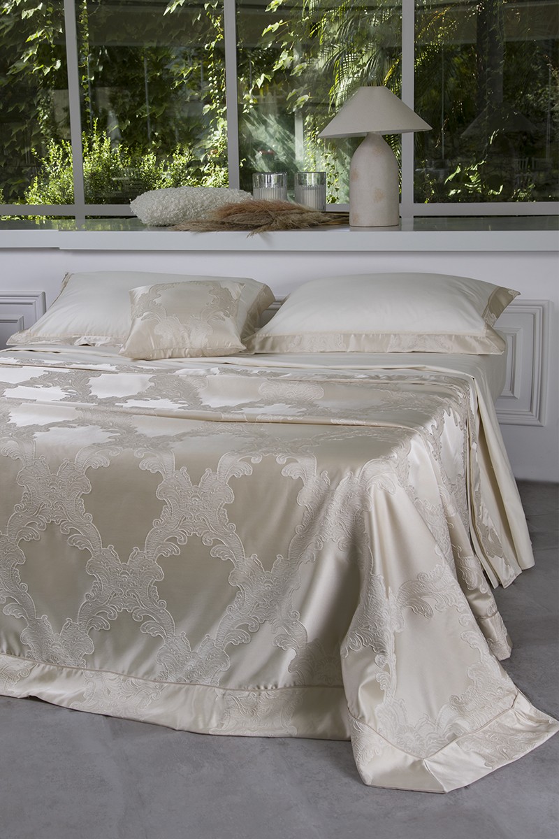 • Copriletto in tessuto raso operato manoseta