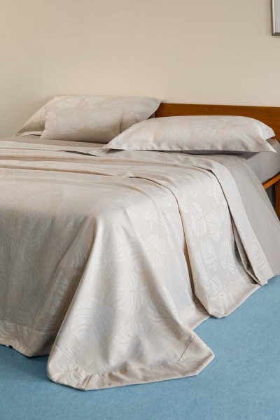 Copriletto in tessuto jacquard Eco Green, realizzato artigianalmente garantendo standard di sostenibilità ambientale.