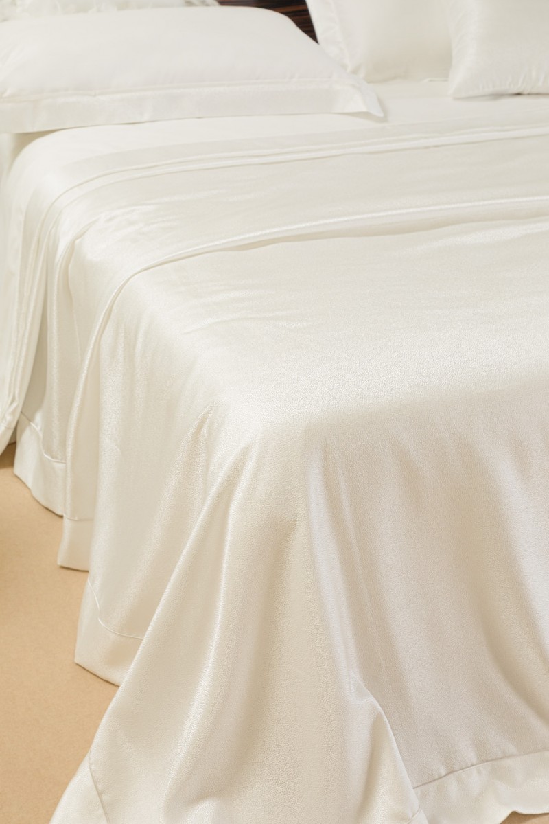 Copriletto in tessuto jacquard microdisegno. Realizzato artigianalmente e 100% Made in Italy.