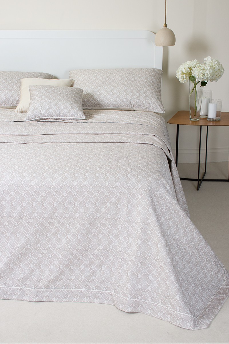 Vanny della Linea Relax nasce per chi desidera un ambiente che parli in ogni dettaglio. Le sue lenzuola di sotto stampate avvolgono il letto come un gesto di continuità, creando un rifugio che calma, distende e accompagna verso un riposo davvero completo.