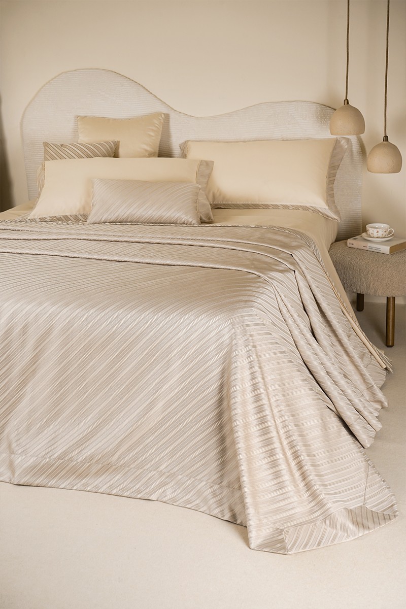 Copriletto in raso operato manoseta con inserto di profilo in raso. Realizzato artigianalmente e 100% Made in Italy.