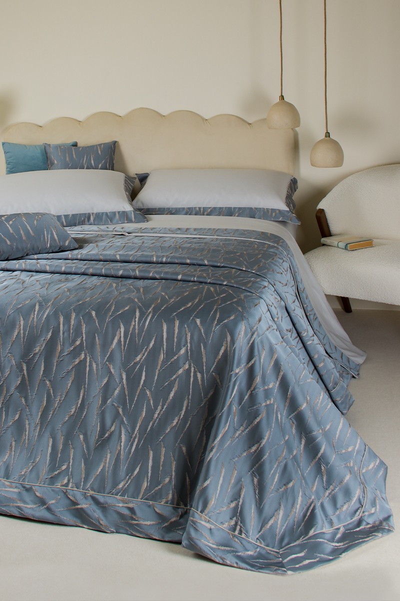 Copriletto in raso operato manoseta con inserto di profilo in raso. Fascino, eleganza contemporanea