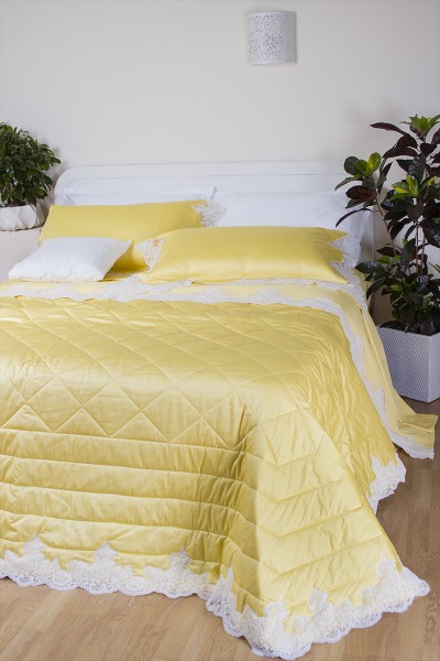 - Tessuto superiore 100% raso di cotone con pizzo rebrodè, tessuto inferiore 100% cotone, imbottitura anallergica e igienica