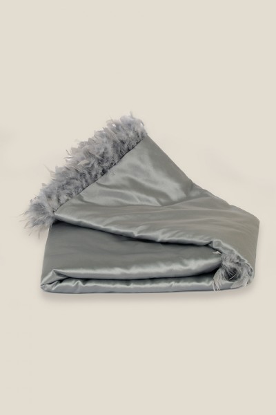 Plaid in rasone con piume realizzato artigianalmente. Misura 140 cm X 160 cm