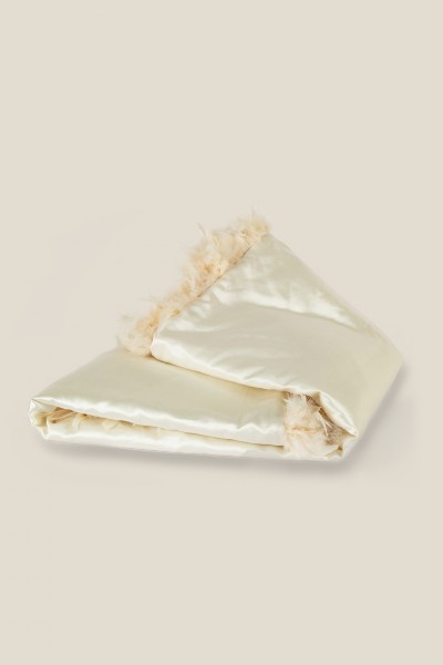 Plaid in rasone con piume realizzato artigianalmente. Misura 140 cm X 160 cm