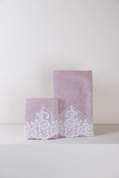 Set asciugamani in 100% spugna con elegante pizzo rebrodè.