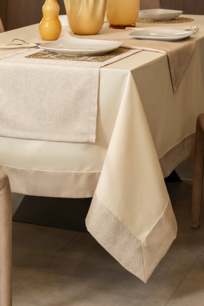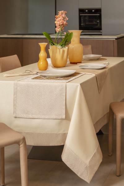 - Tovaglia per 12 persone mis. 160 cm X 280 cm in panama con bordo jacquard e profilo a tono