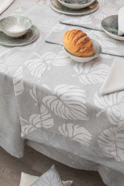 Set tovaglia con runner in tessuto jacquard Eco Green per uno stile unico ed elegante alla tua tavola.