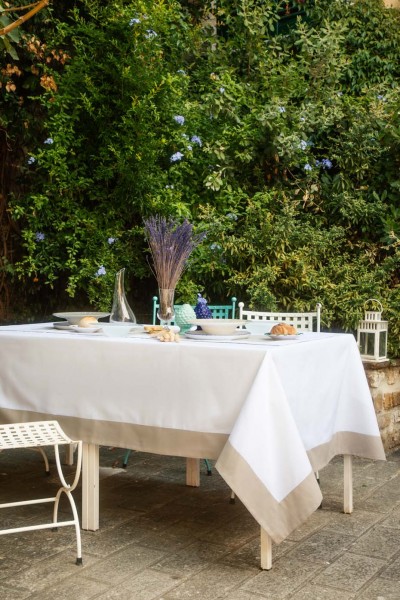 • Tovaglia per 12 persone mis. 160 cm X 280 cm in panama con bordo a contrasto