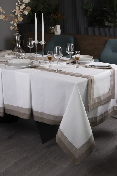 • Tovaglia per 12 persone mis. 160 cm X 280 cm in panama con fascette a contrasto