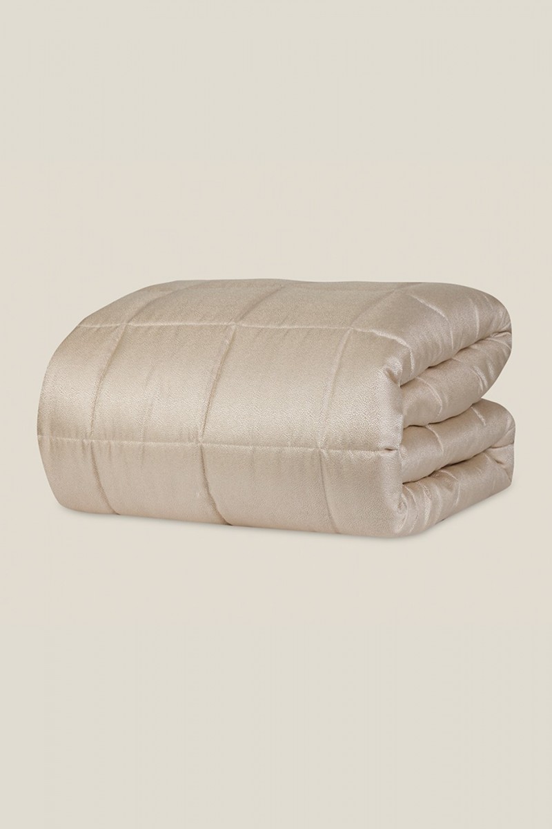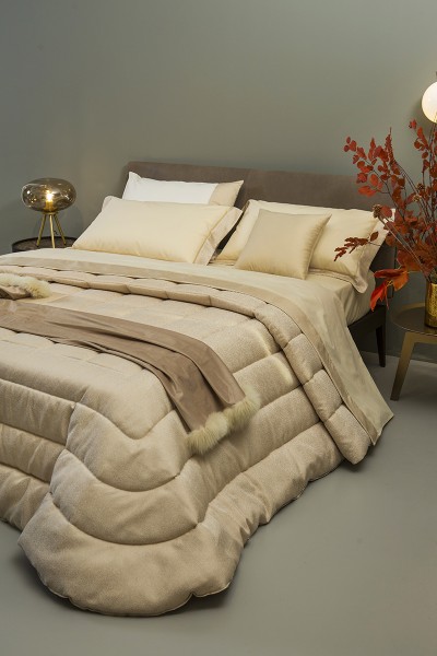 Trapunta in pregiato tessuto jacquard microdisegno. Realizzata artigianalmente e 100% Made in Italy.
