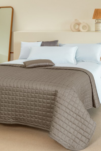 Trapuntino in pregiato raso di satin 100% con trapuntatura geometrica misura 270x270 raffinato ed essenziale.