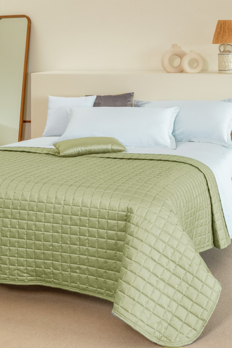 Trapuntino in pregiato raso di satin 100% con trapuntatura geometrica misura 270x270 raffinato ed essenziale.