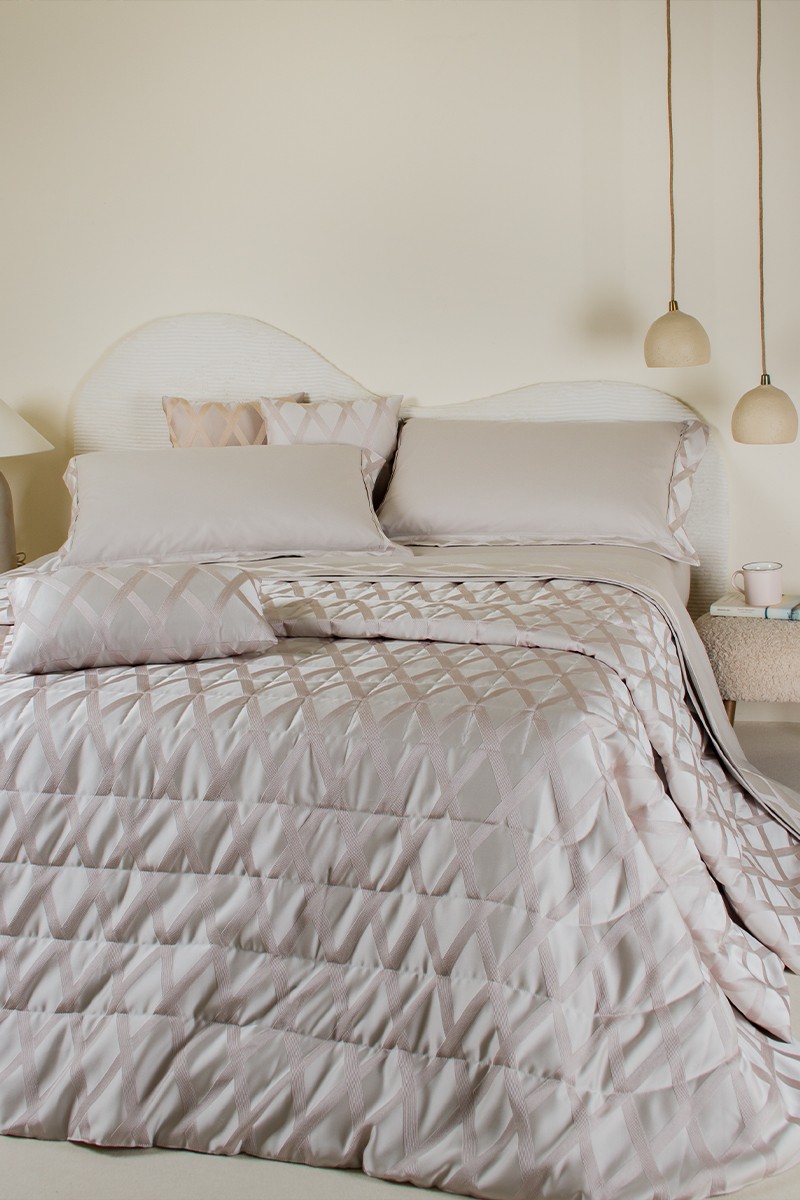 Trapuntino in tessuto raso operato manoseta. Realizzato artigianalmente e 100% Made in Italy.