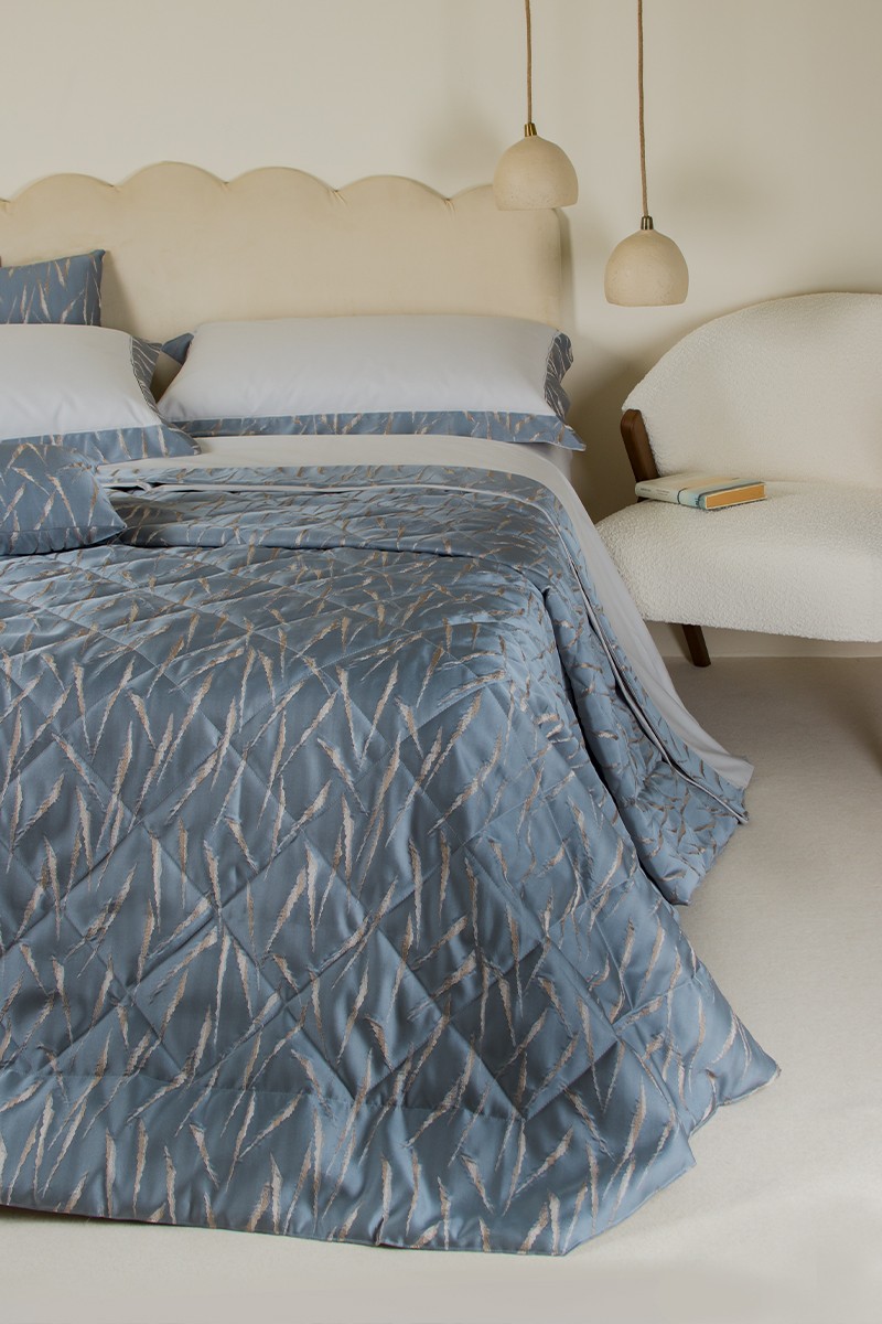 • Tessuto superiore in tessuto raso operato manoseta, tessuto inferiore 100% cotone, imbottitura anallergica e igienica